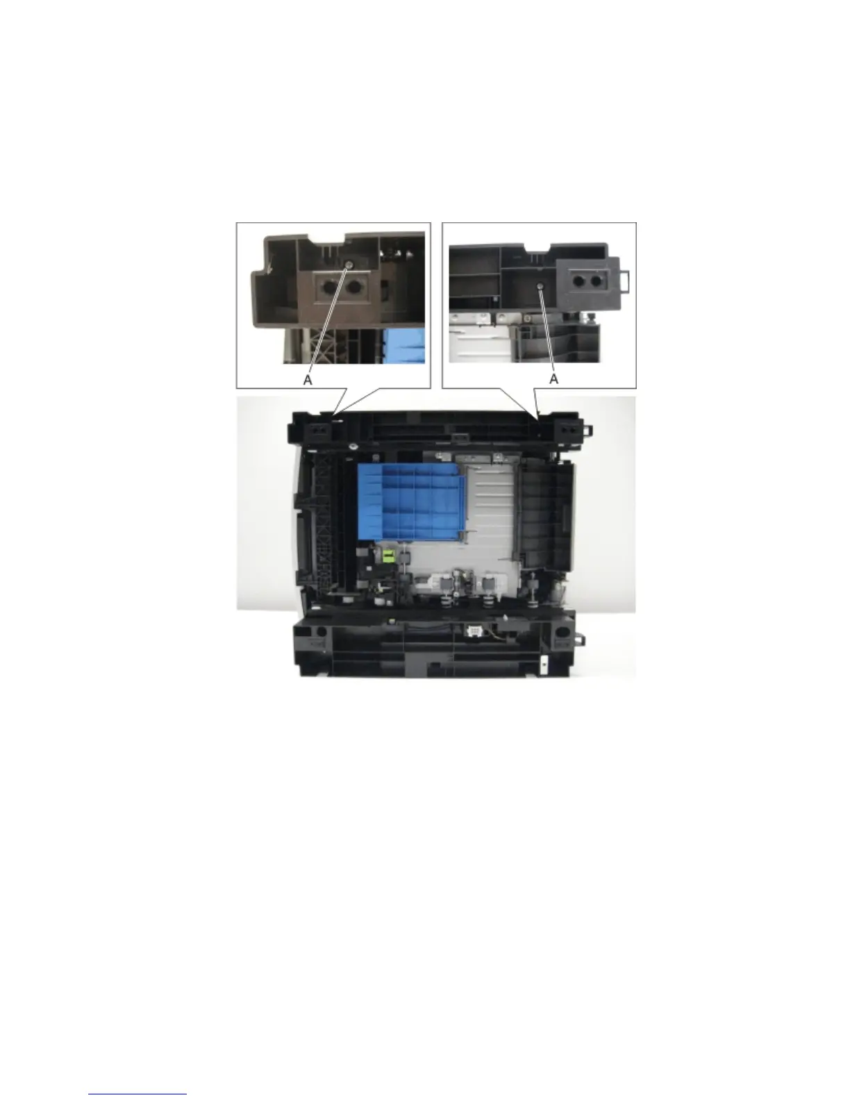 4 Remove the two screws (A) securing the right frame extension to the machine.