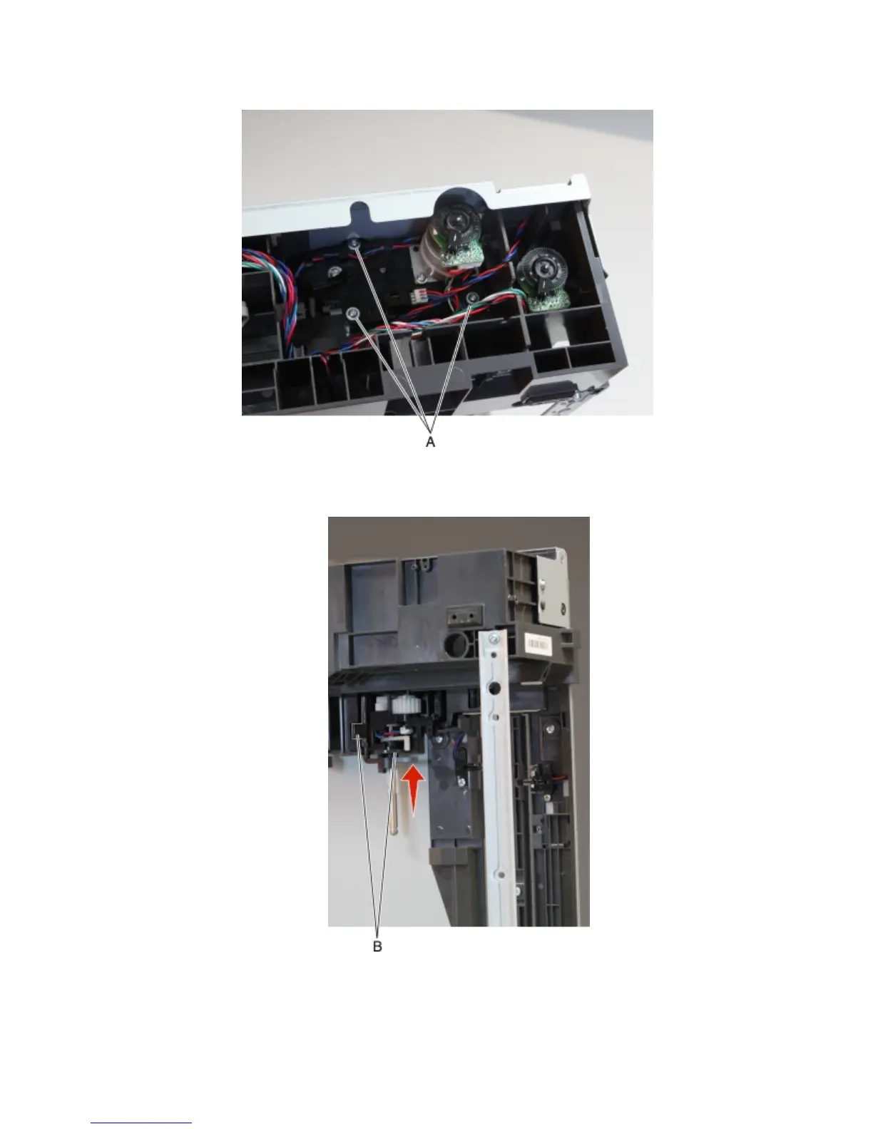 While pushing the media feeder upward, clear the obstacle points (B).
