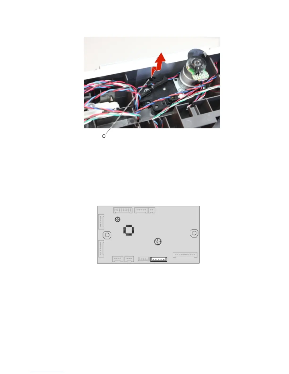 • While pushing the media feeder upward, release the tab (C) by pulling the feeder backward.