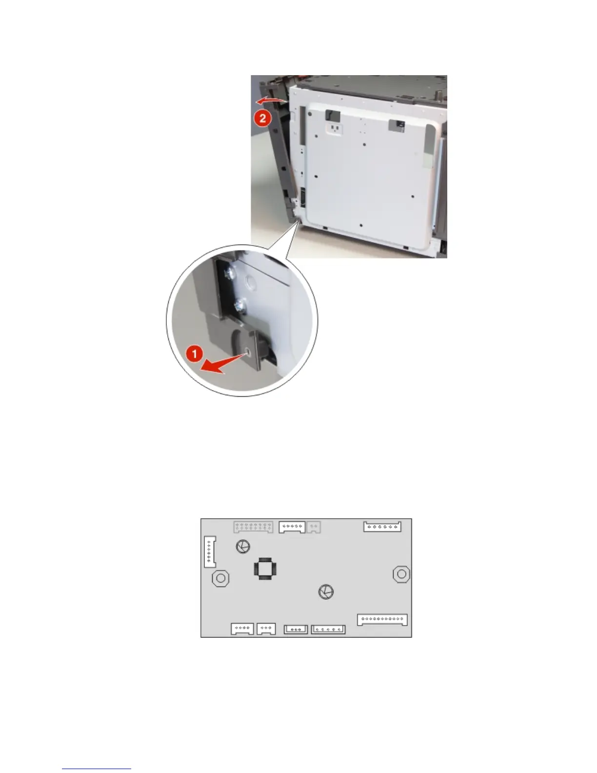 3 Disconnect all the cables (J3, J5, J11, J10, J9, J8, J7 and J1) from the controller PCBA, then remove the two screws
