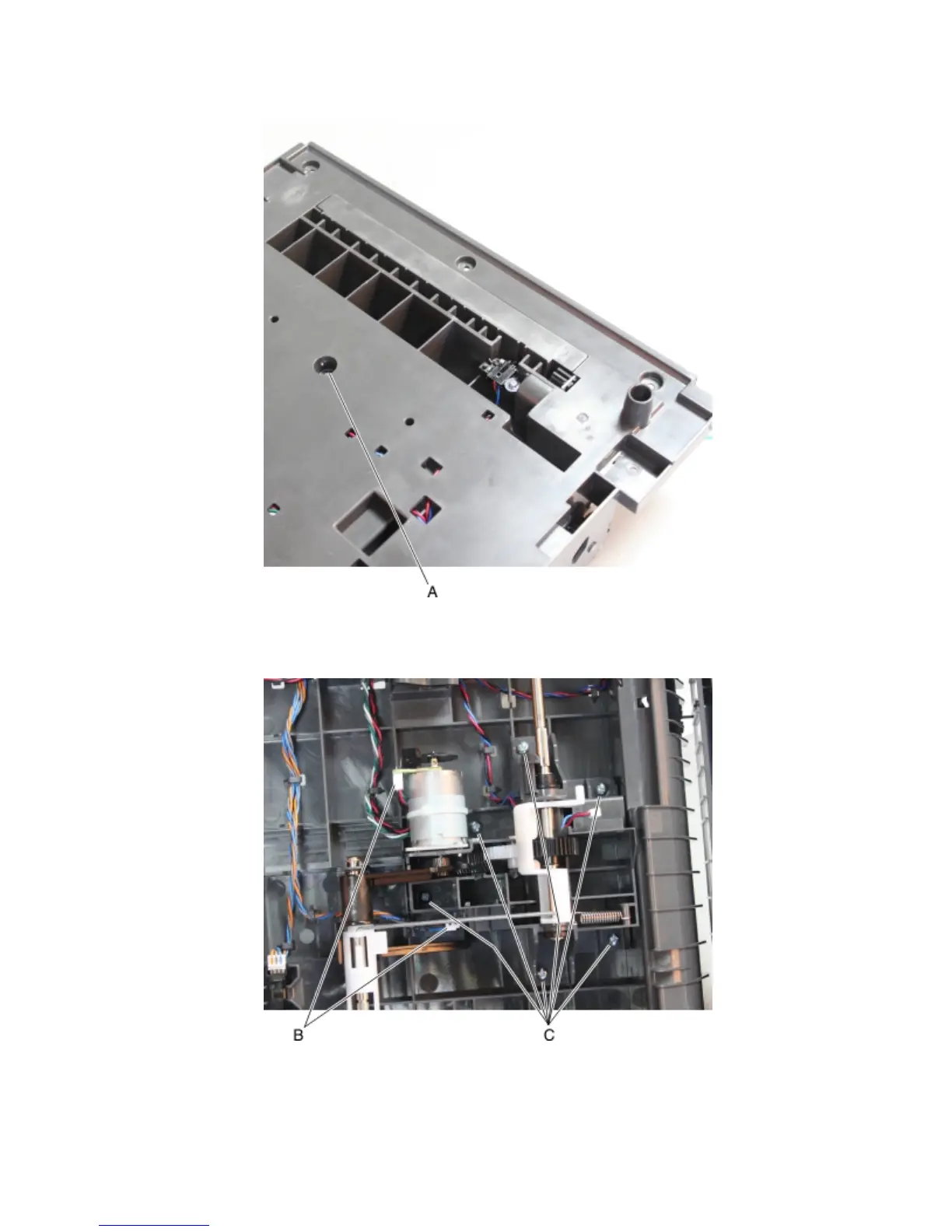 8 Remove the six screws (C) securing the media feeder.