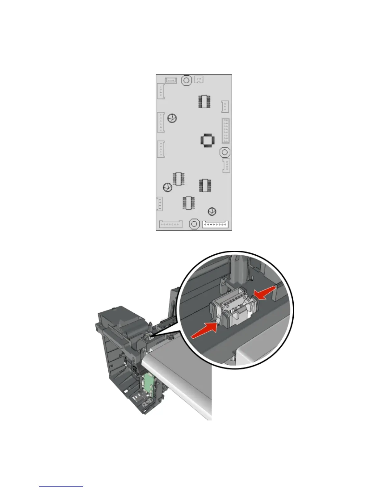 3 Push inward to release the latches, then push the connector out of its slot.
