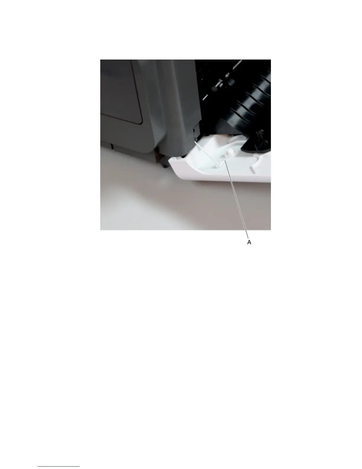 Note: Fasten the string end (B) to the rear side to prevent it from recoiling into the interior of the finisher.