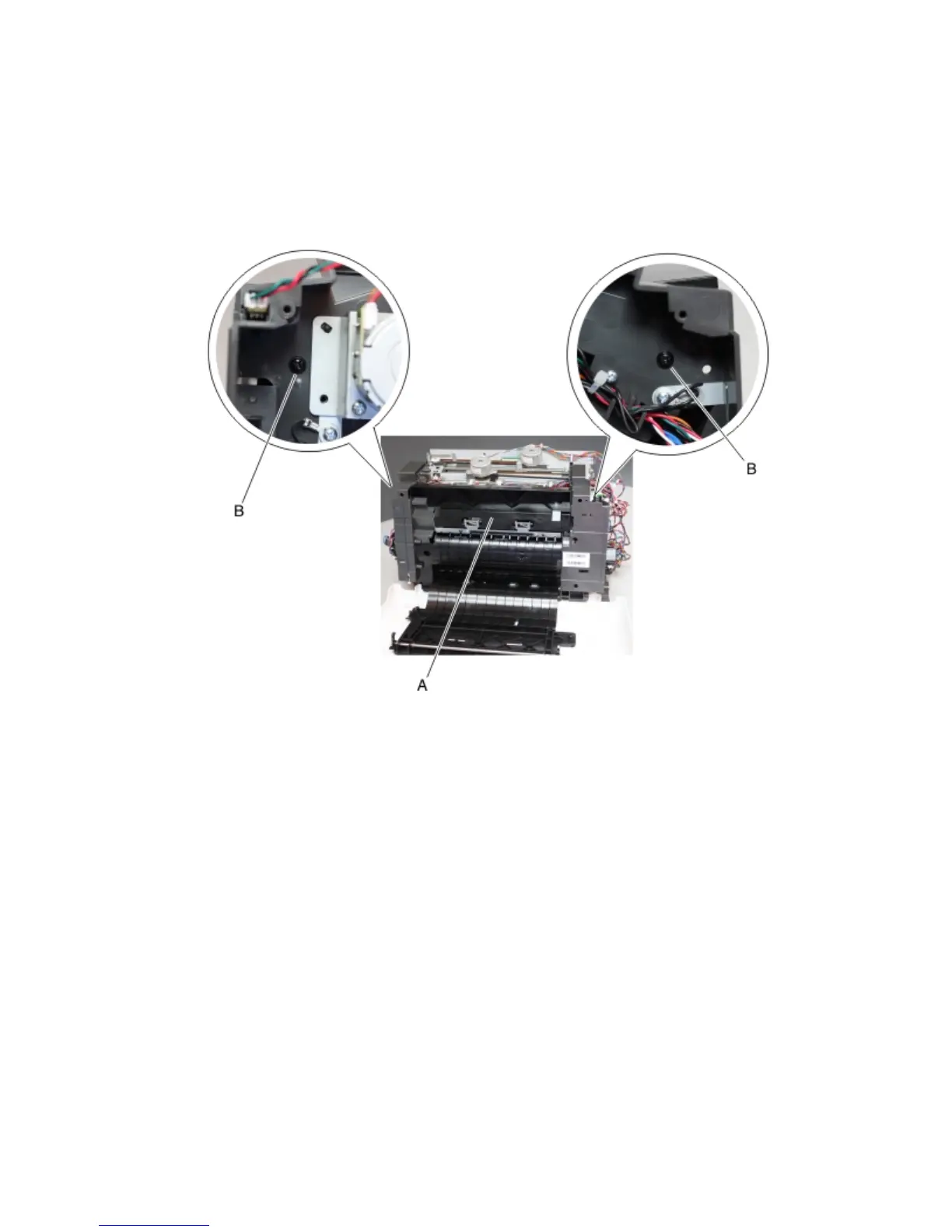 4 Remove the two screws (B) from the cover (A).