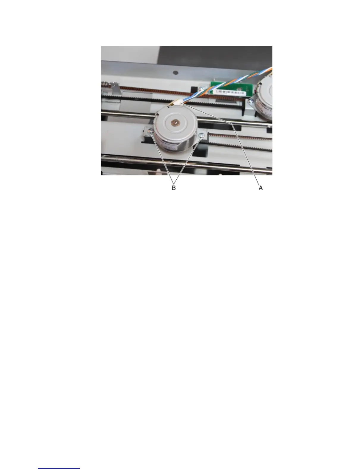 4 Remove the tamper motor assembly engaged to the belt. See “Tamper motor (right) removal” on page 481 or