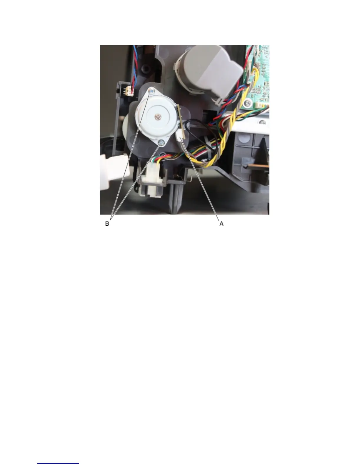 4 Remove the two screws (B) using a #1 Phillips screwdriver, then remove the divert motor.