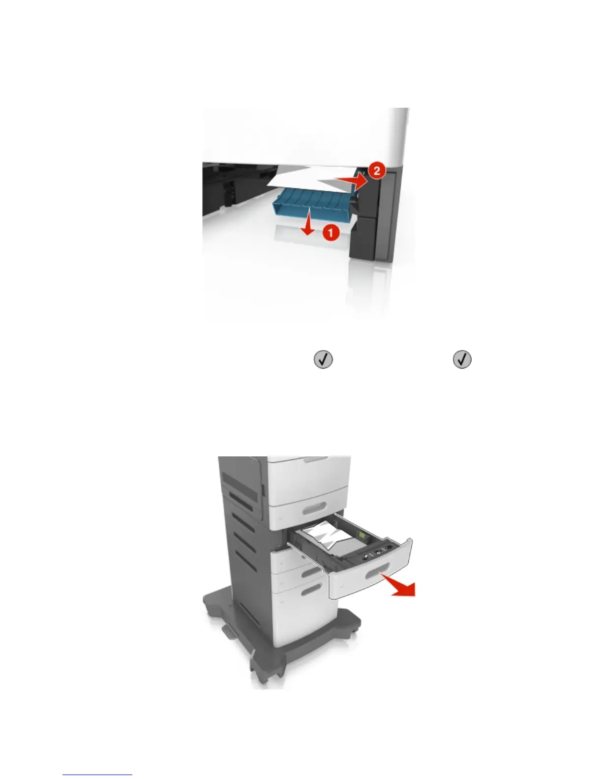 4 To clear the message and continue printing, select Next > > Clear the jam, press OK > .