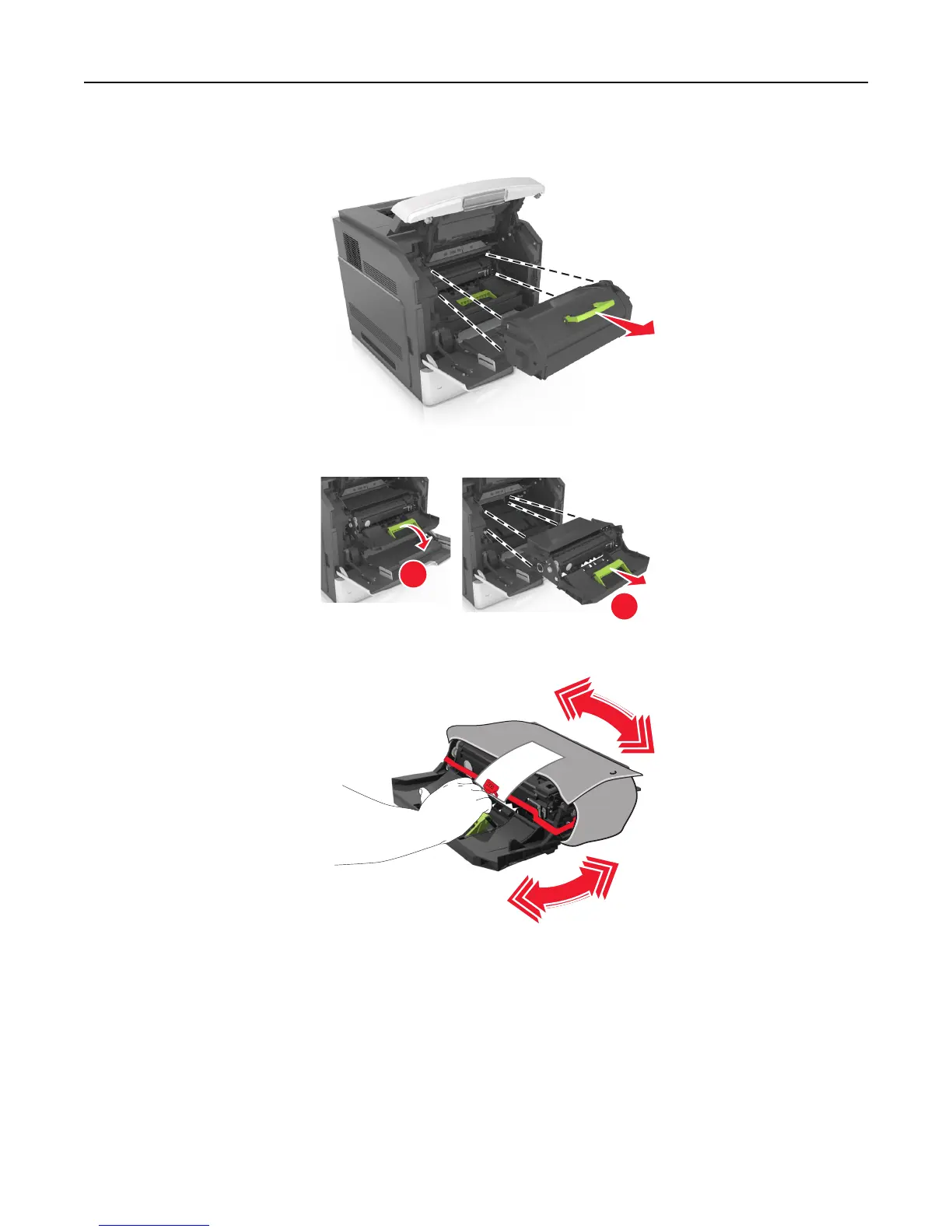 3 Lift the green handle, and then pull out the imaging unit from the printer.