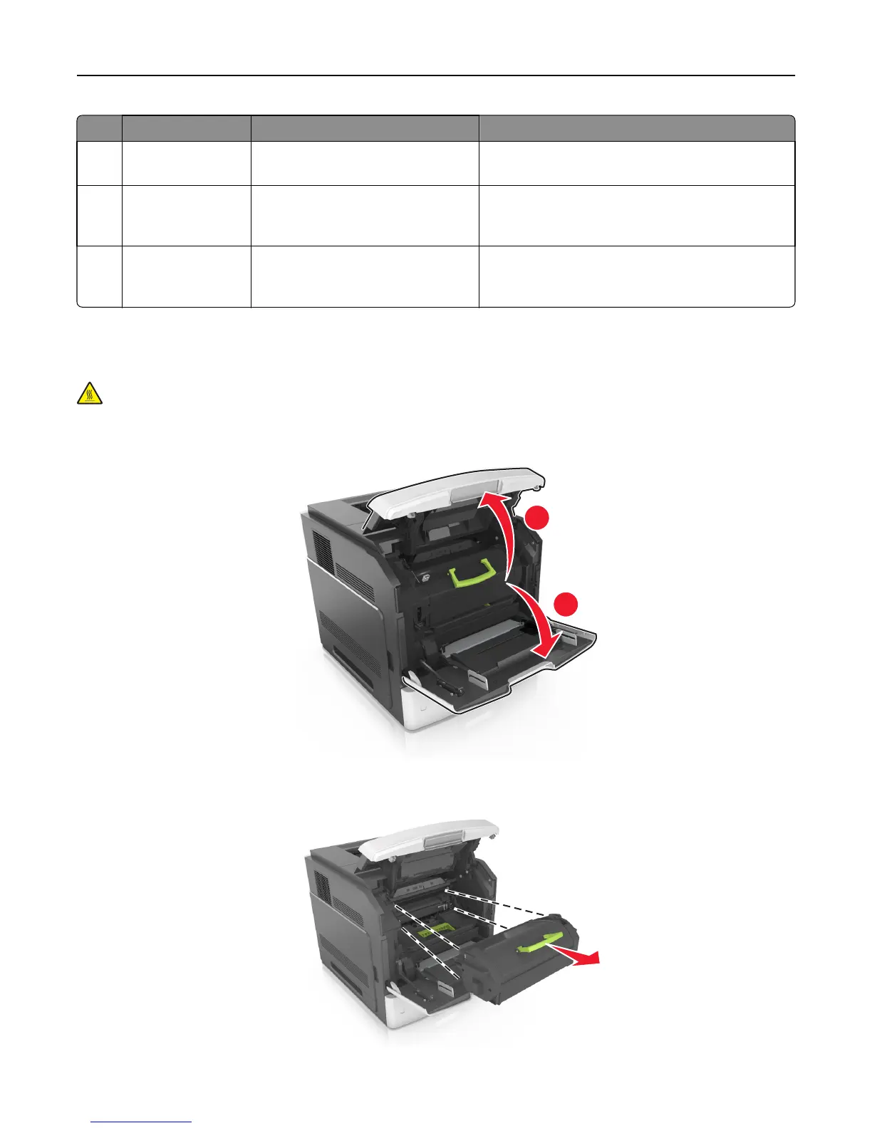 CAUTION—HOT SURFACE: The inside of the printer might be hot. To reduce the risk of injury from a hot