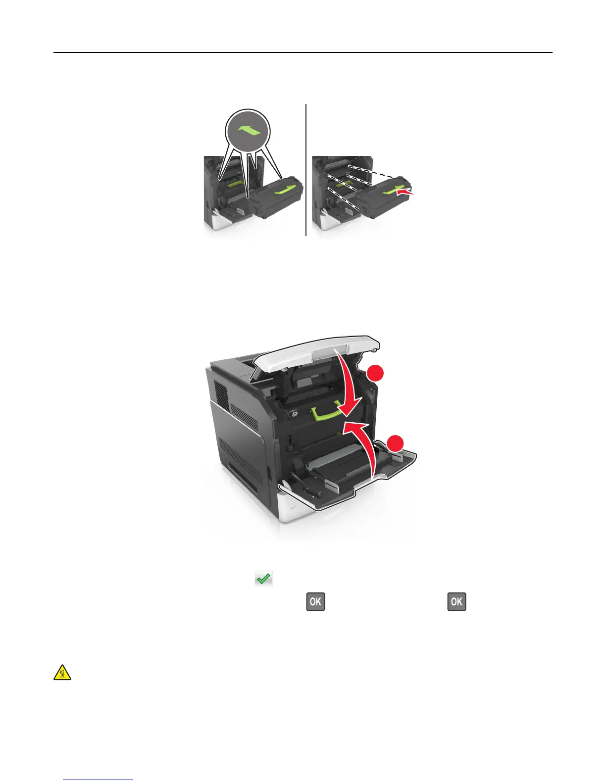 CAUTION—HOT SURFACE: The inside of the printer might be hot. To reduce the risk of injury from a hot