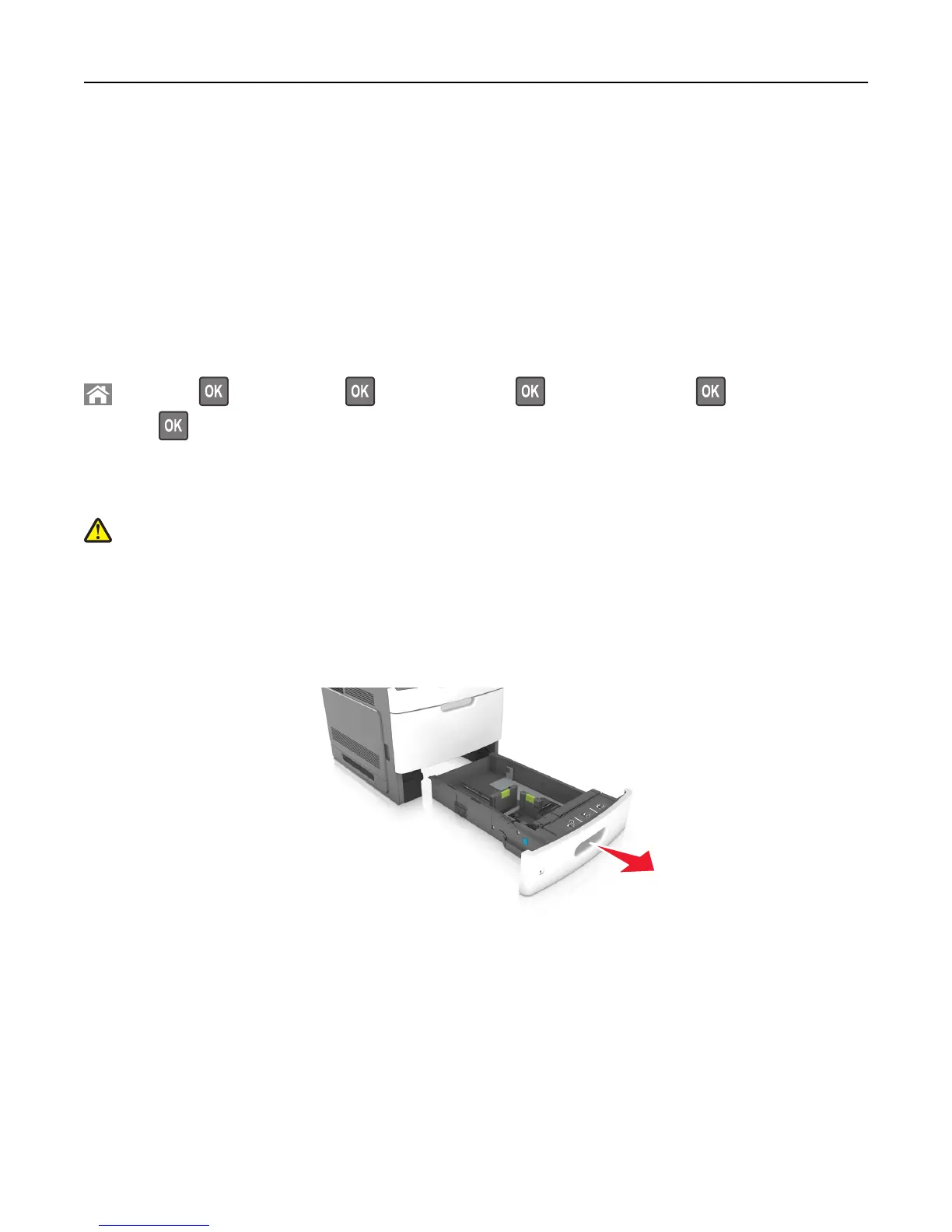 • Avoid removing trays while a job prints or while Busy appears on the display. Doing so may cause a jam.