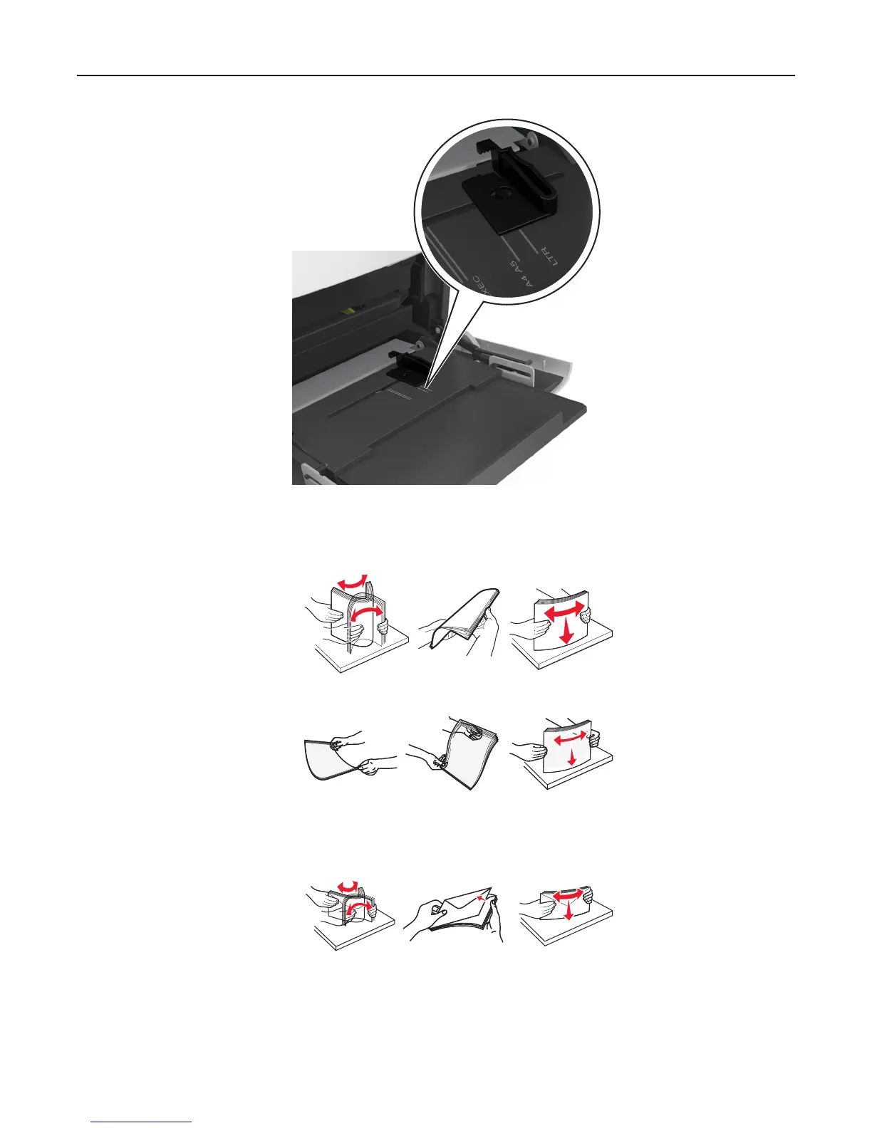 • Flex sheets of paper back and forth to loosen them, and then fan them. Do not fold or crease the paper. Straighten