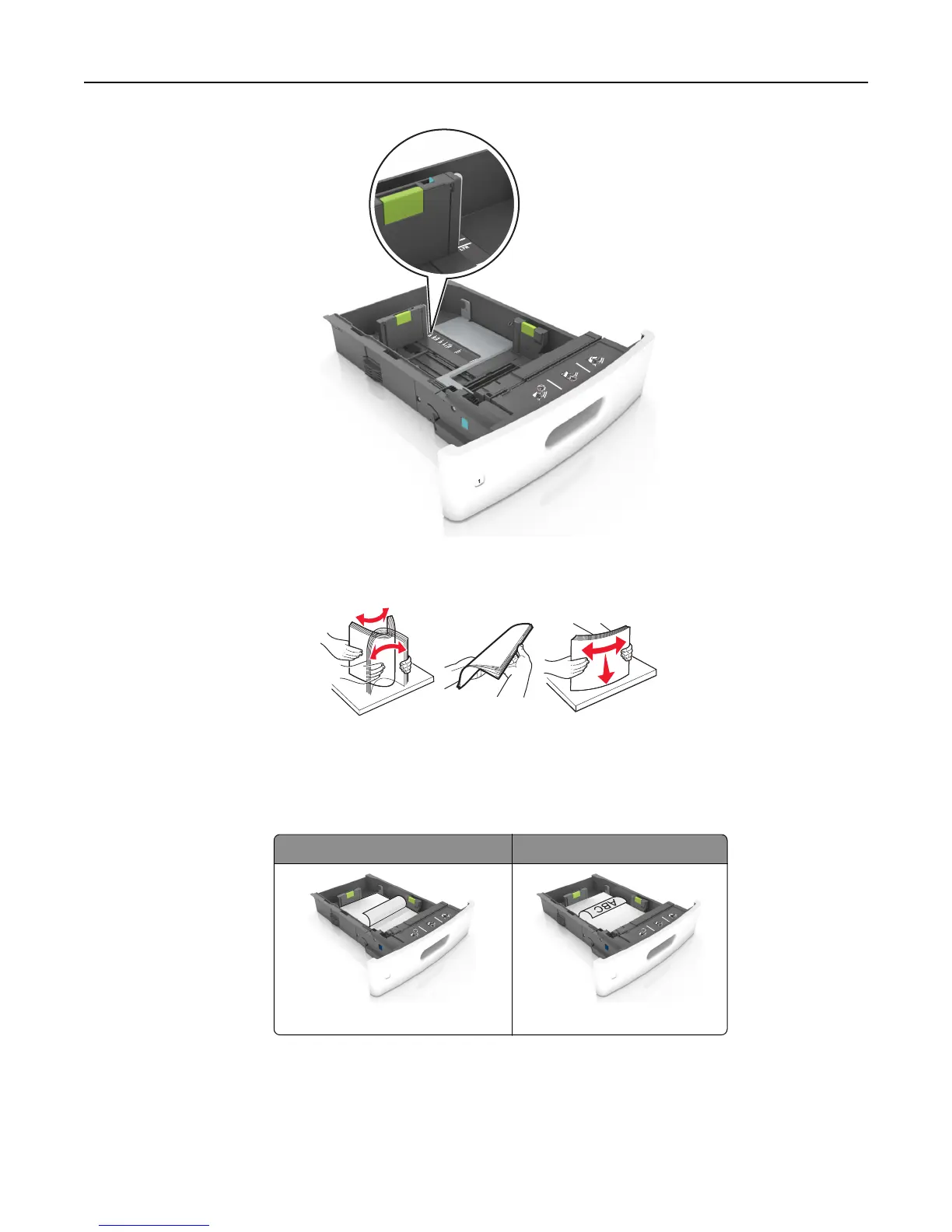 4 Flex the sheets back and forth to loosen them, and then fan them. Do not fold or crease the paper. Straighten the