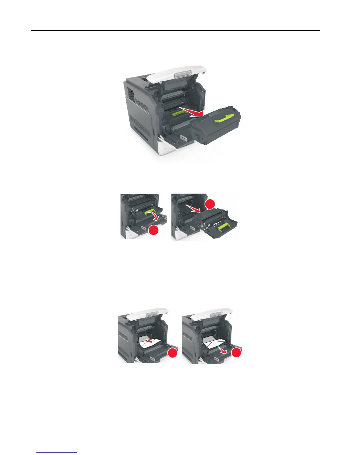 4 Lift the green handle, and then pull the imaging unit out of the printer.