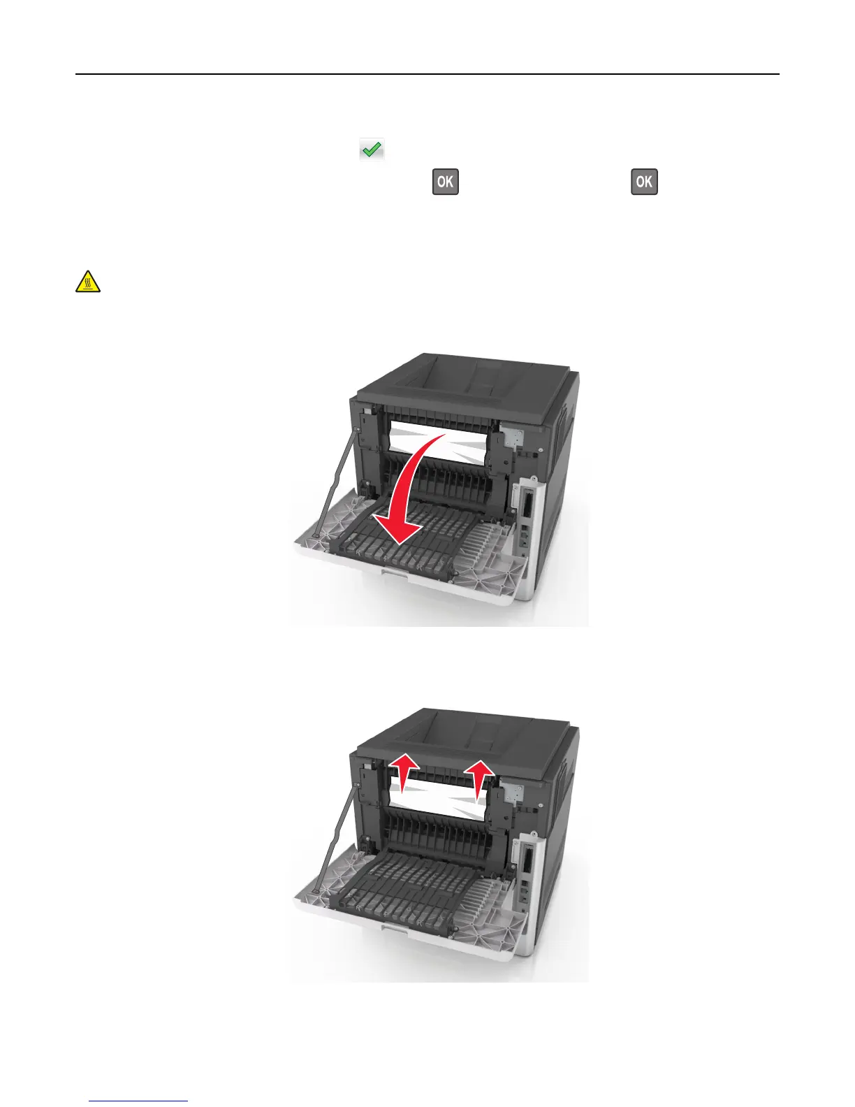 • For non‑touch‑screen printer models, select Next > > Clear the jam, press OK > .