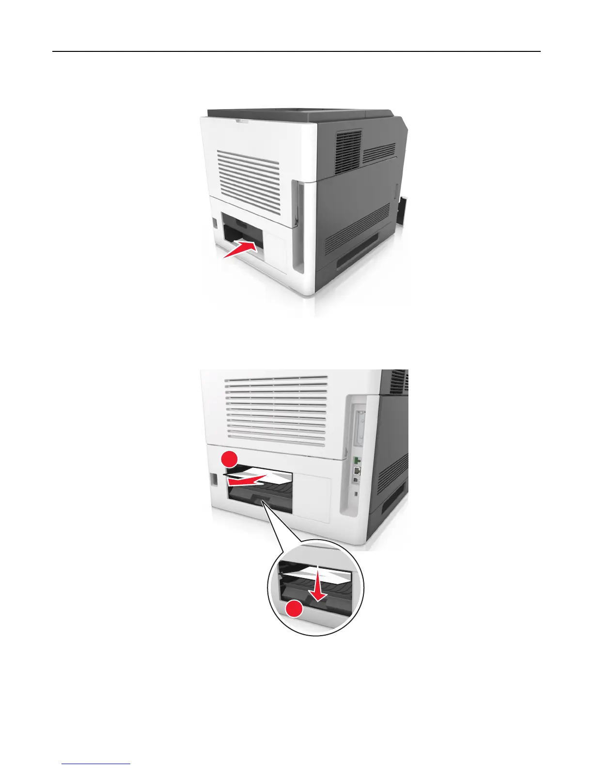 5 Press down the rear duplex flap, then firmly grasp the jammed paper, and then gently pull the paper out.