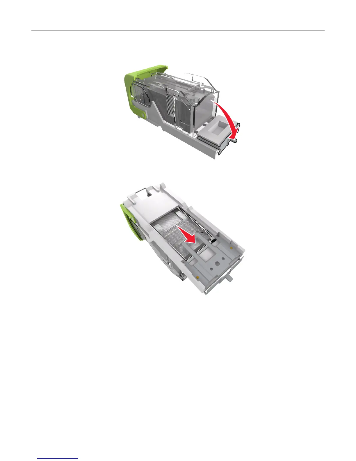 Note: If the staples are at the rear of the cartridge, then shake the cartridge downward to bring the staples near