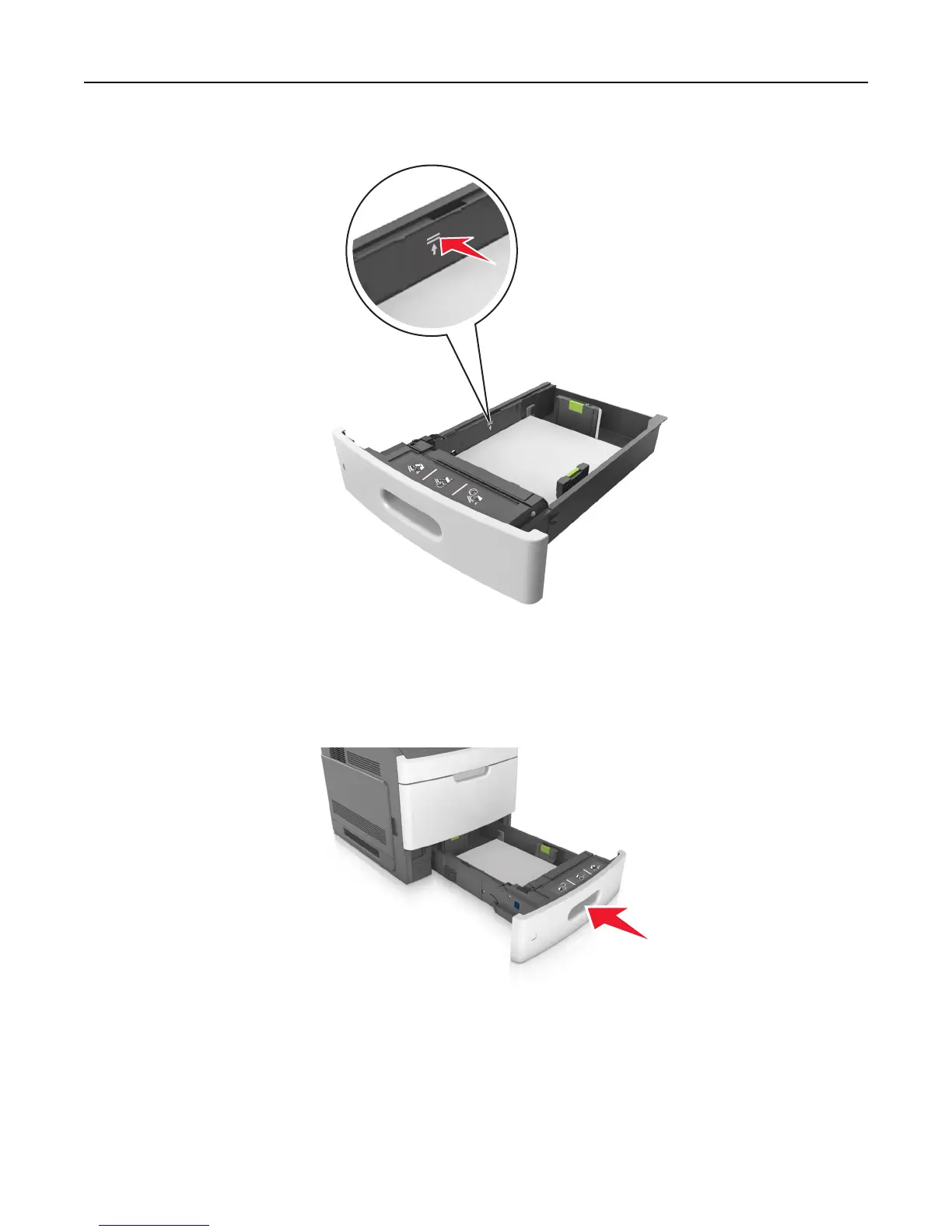 • Make sure the paper is below the maximum paper fill indicator.