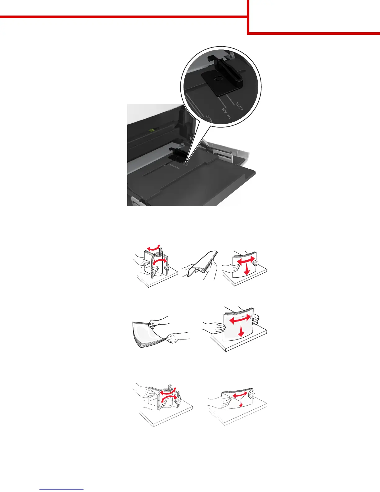 • Flex sheets of paper back and forth to loosen them. Do not fold or crease the paper. Straighten the edges on a level