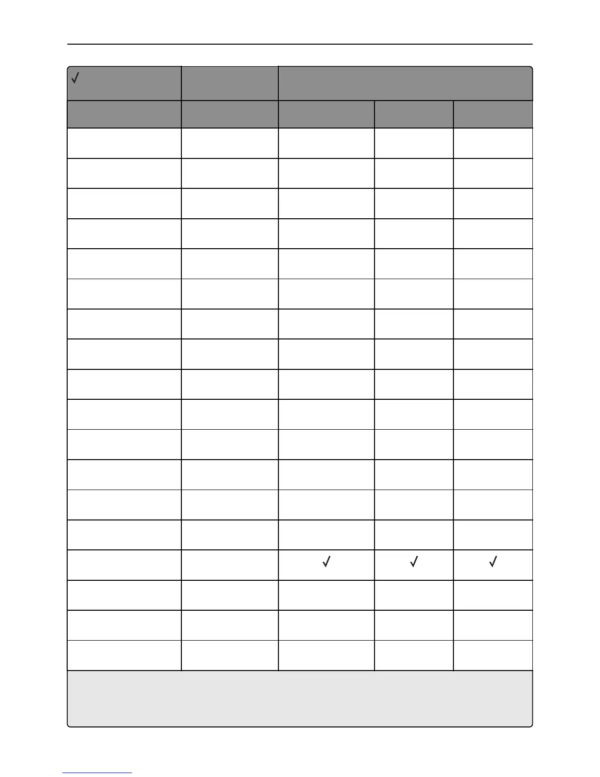 X = Not supported