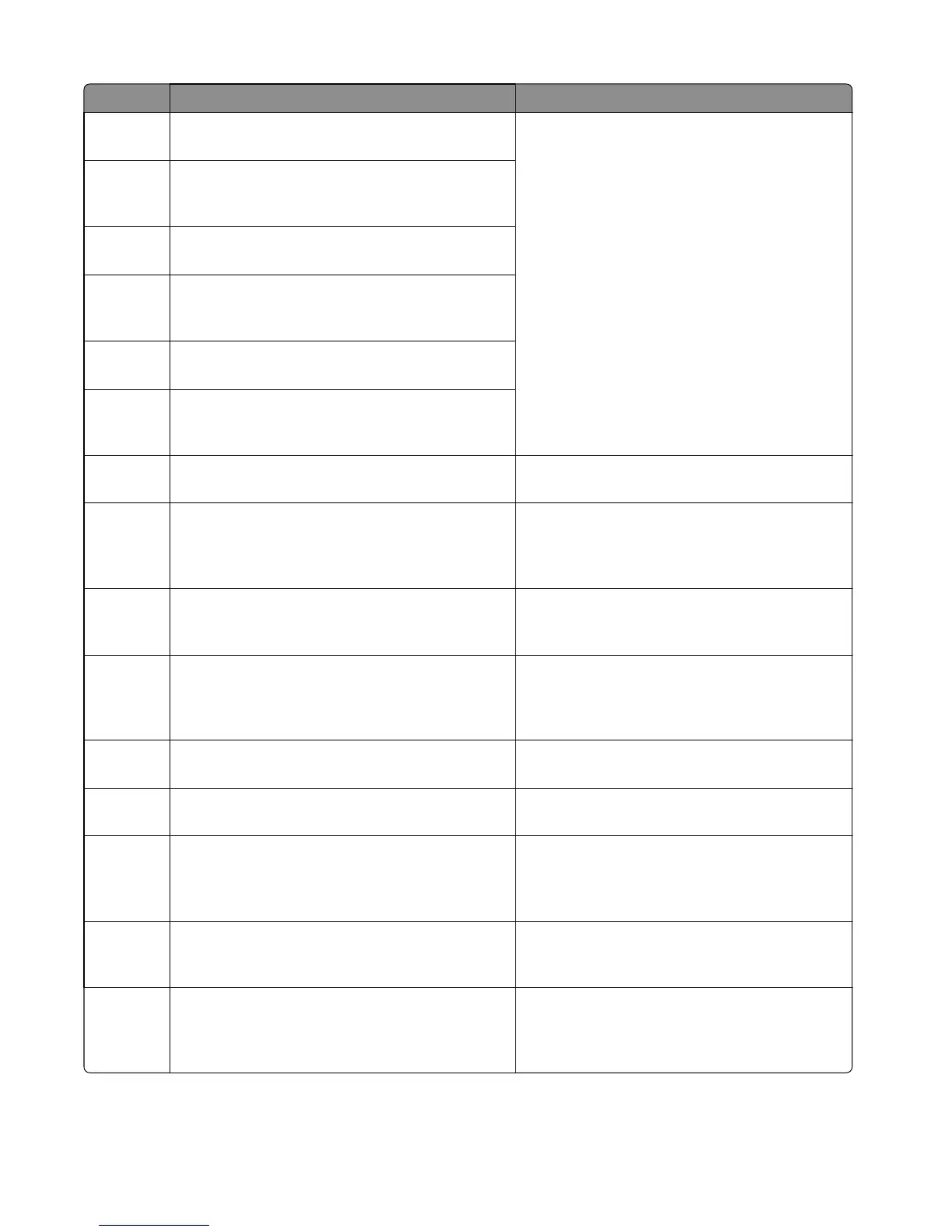 Error code Description Action