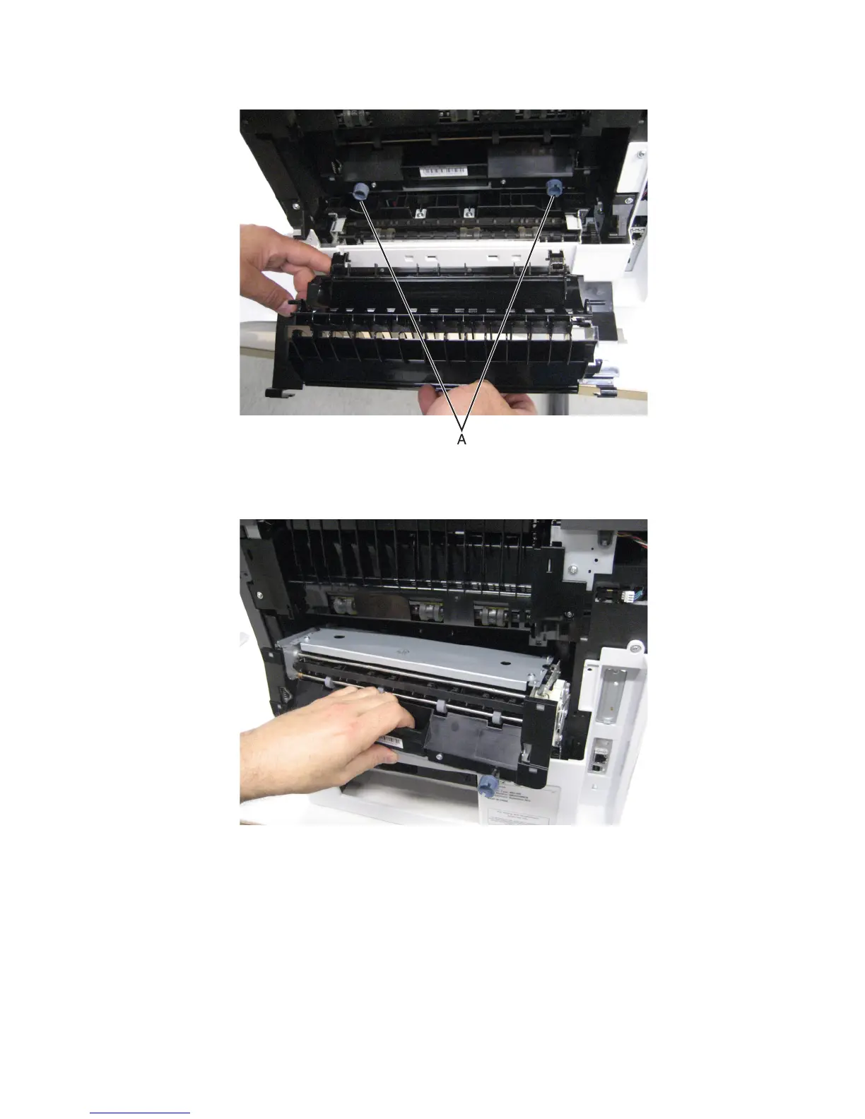 3 Loosen the two fuser thumbscrews (A).