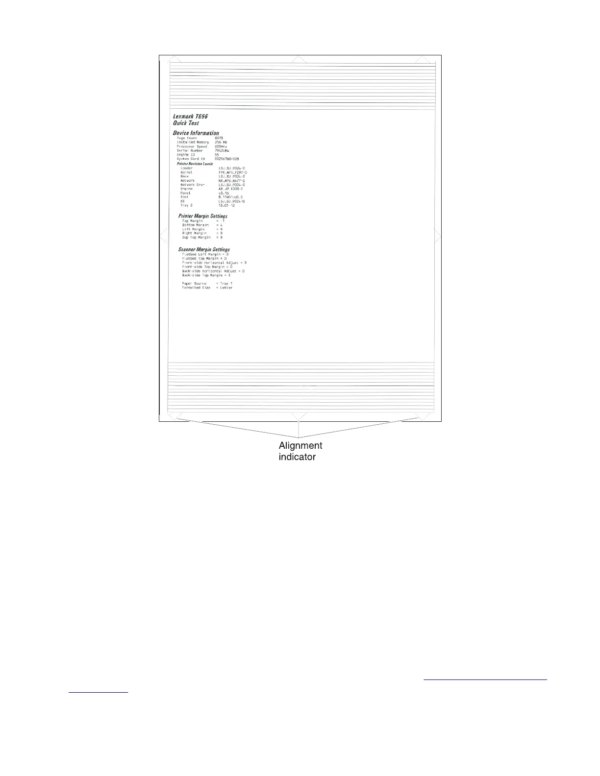 3 Review the test page to check for skews at the alignment indicators.