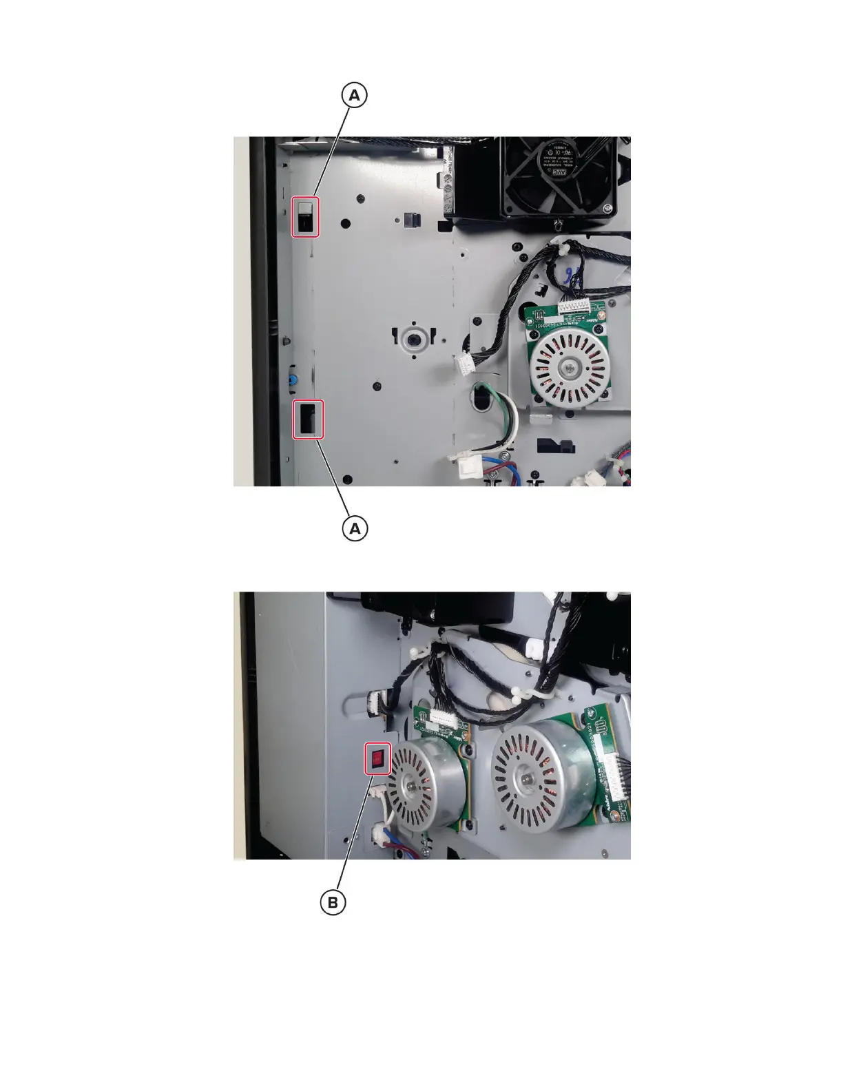 Installation note: Make sure that the voltage selector switch (B) is set to the proper voltage.
