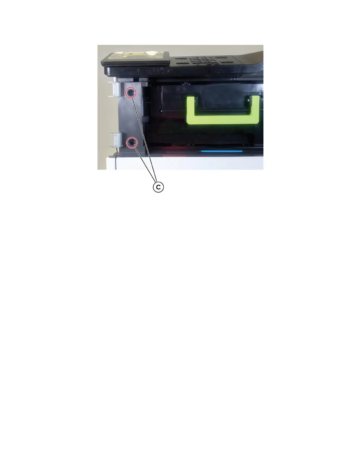 4 Remove the two screws (C).