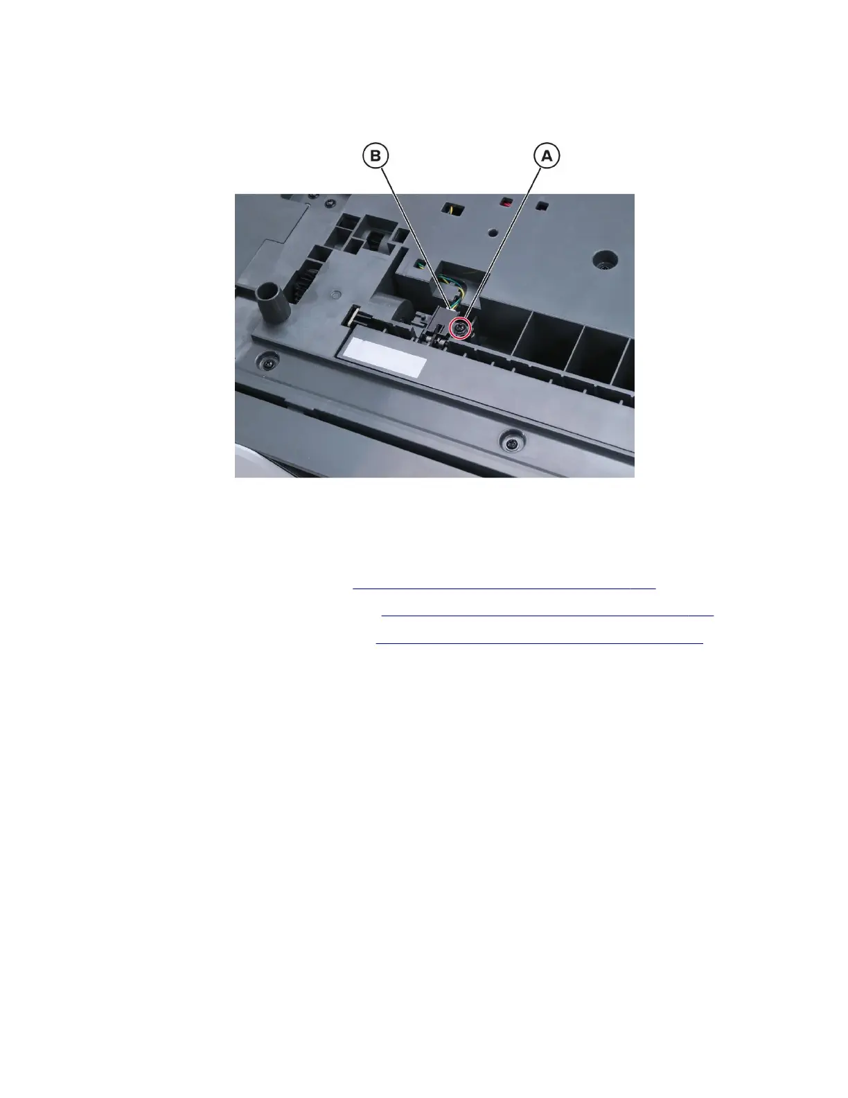 2 Remove the 2100-sheet tray rear cover. See “2100-sheet tray rear cover removal” on page 473.