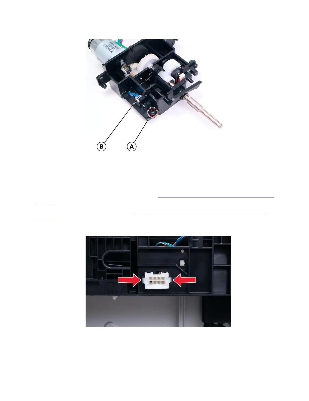 5 Remove the screw (A), and then disconnect the sensor cable (B).