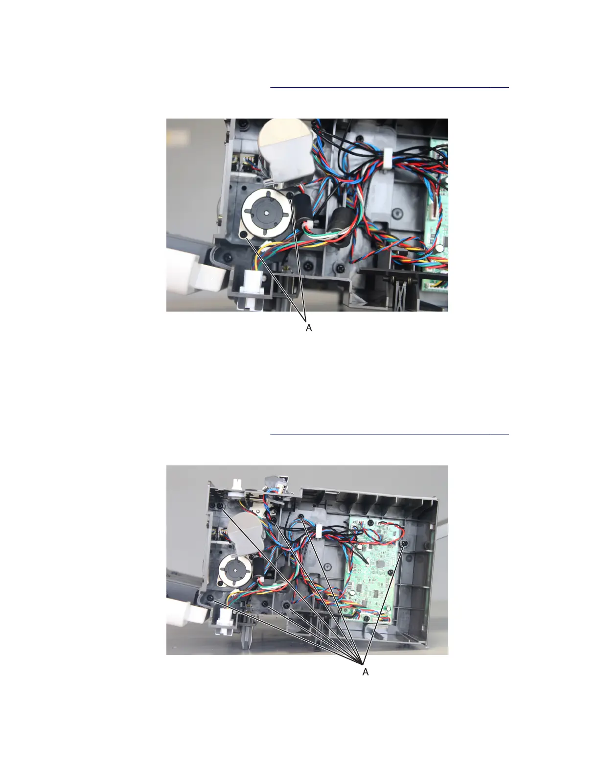 2 Disconnect the motor cable, and then remove the two screws (A).