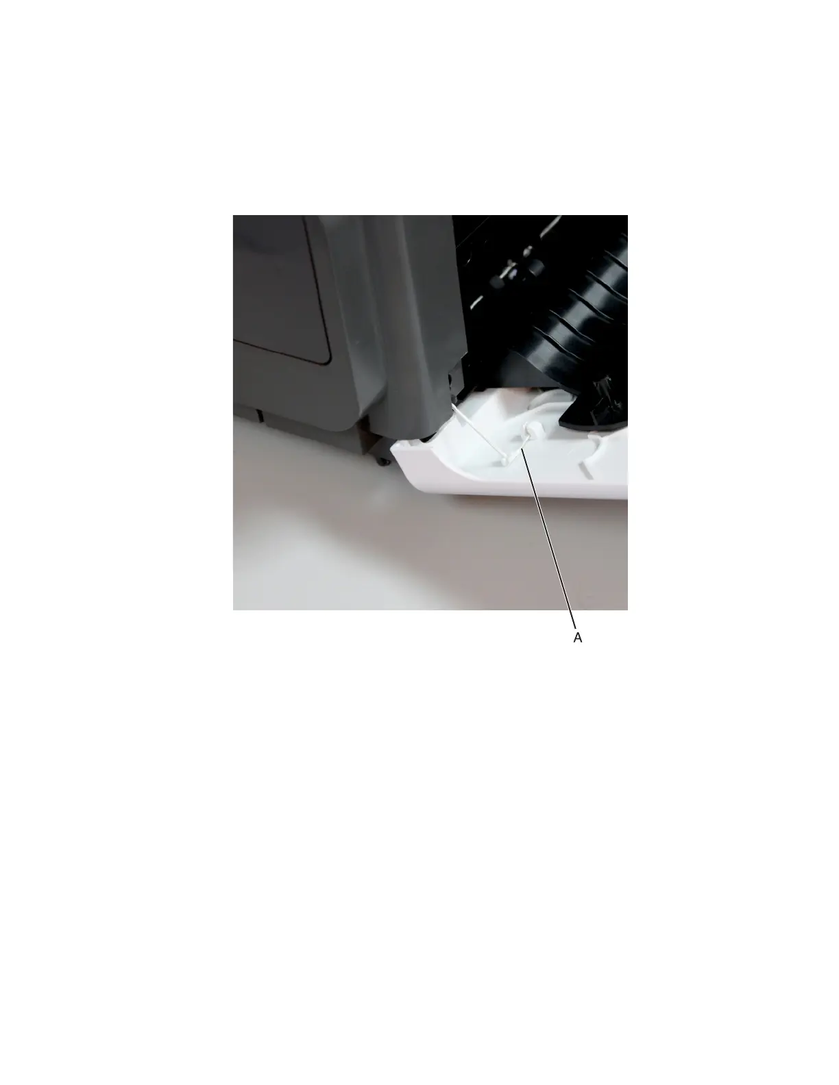 1 Open the rear door, and then detach the string (A) from the rear door.