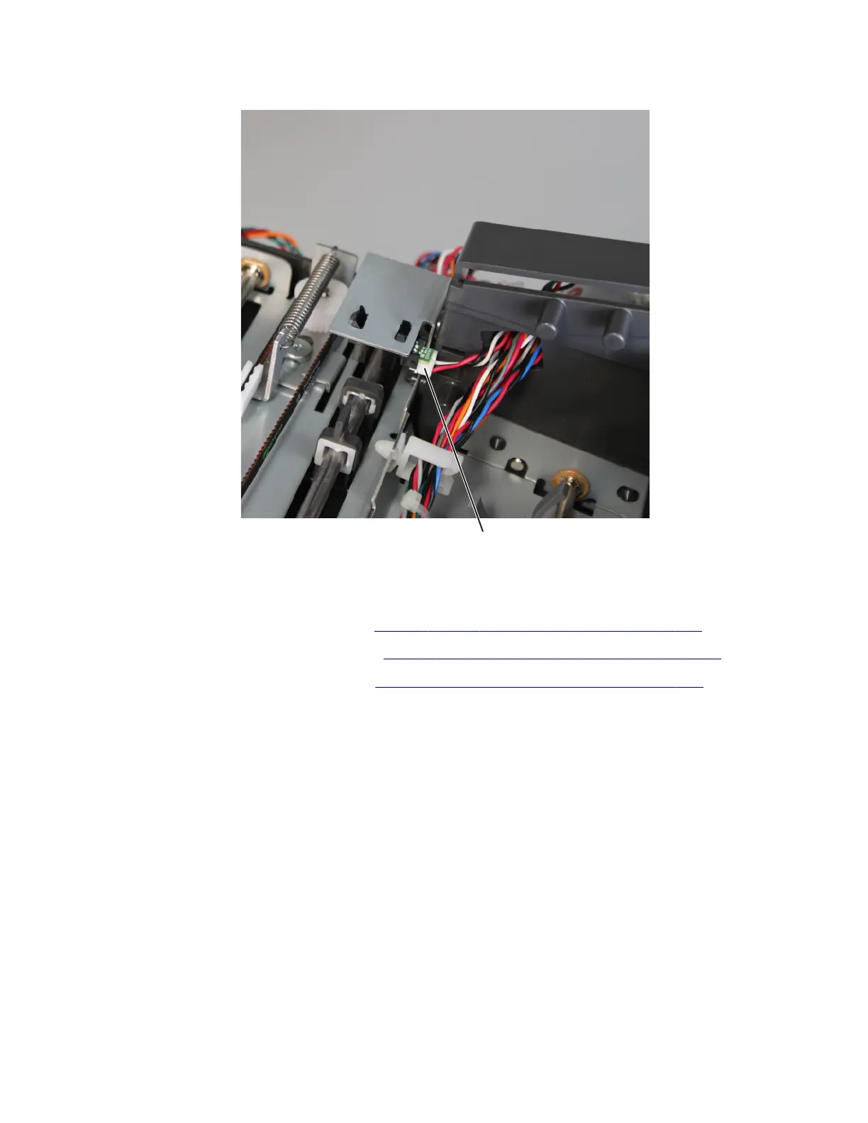 3 Remove the staple finisher top cover. See “Staple finisher top cover removal” on page 588.