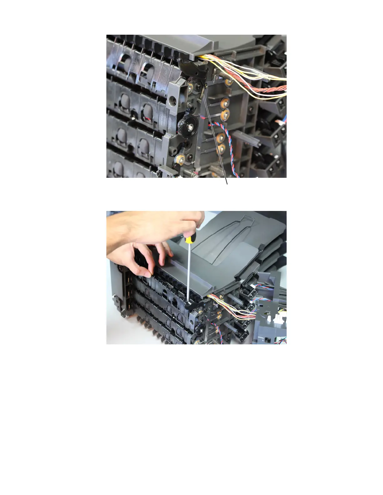 8 Pry the diverter o its hinge. Dislodge also the other end of the diverter, and then remove the diverter.