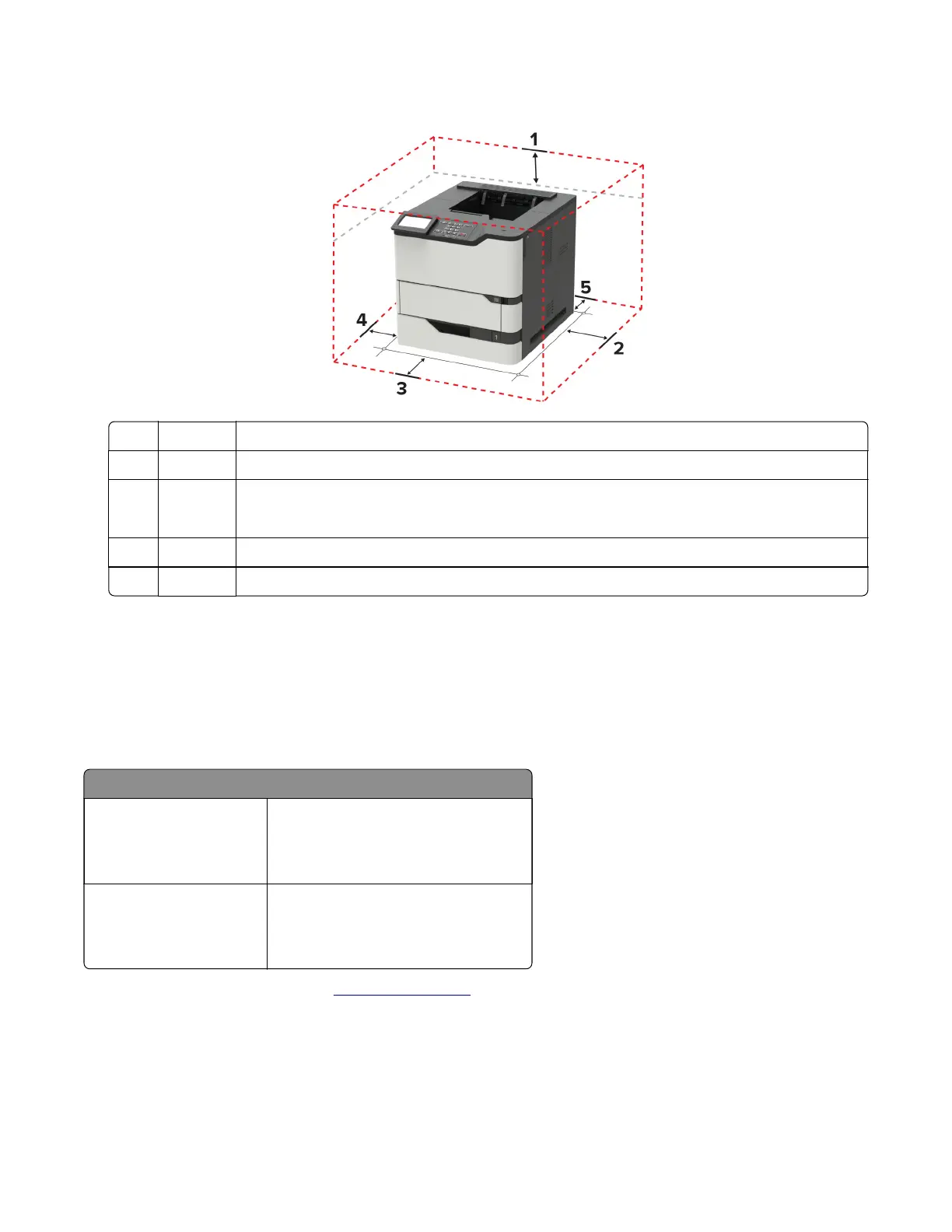 Note: The minimum space needed in front of the printer is 76 mm (3 in.).