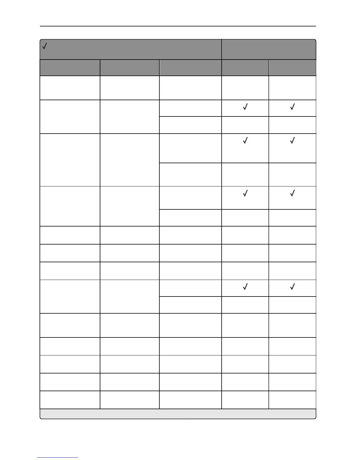 X = Not supported