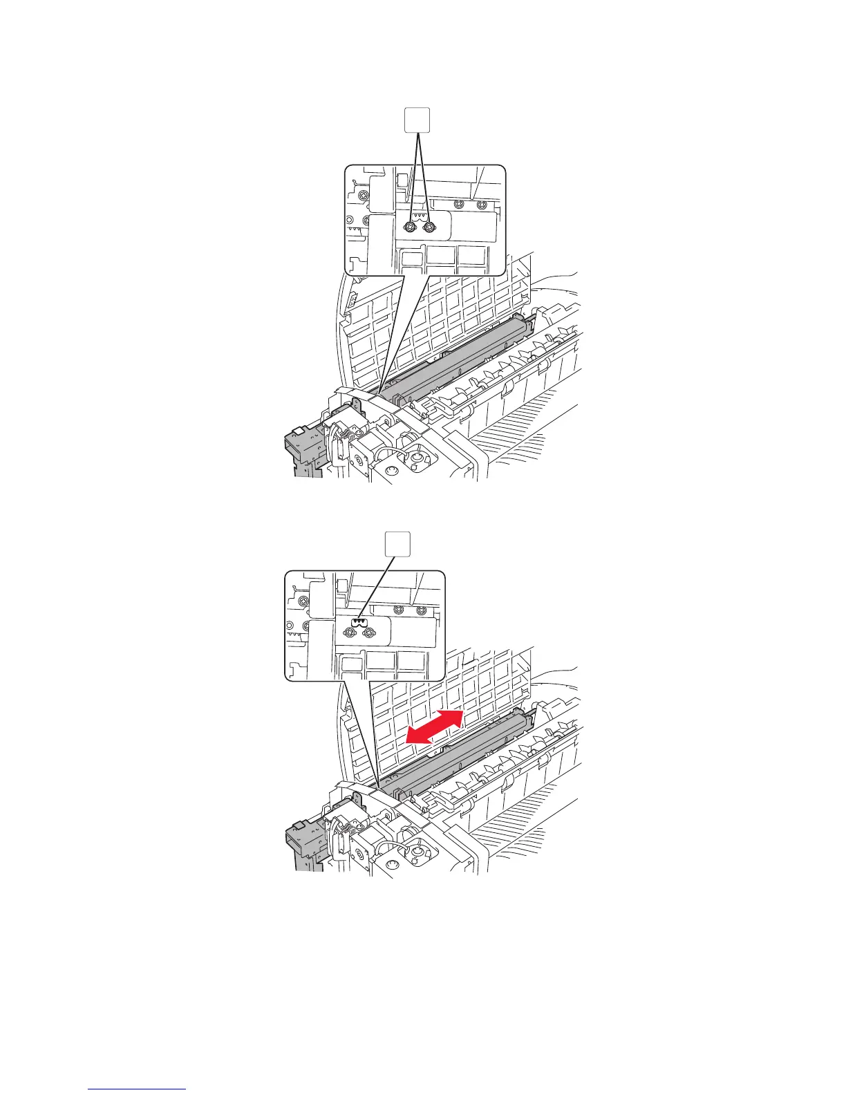 4 Using the marks (B) on the frame, move the punch unit to adjust its position.