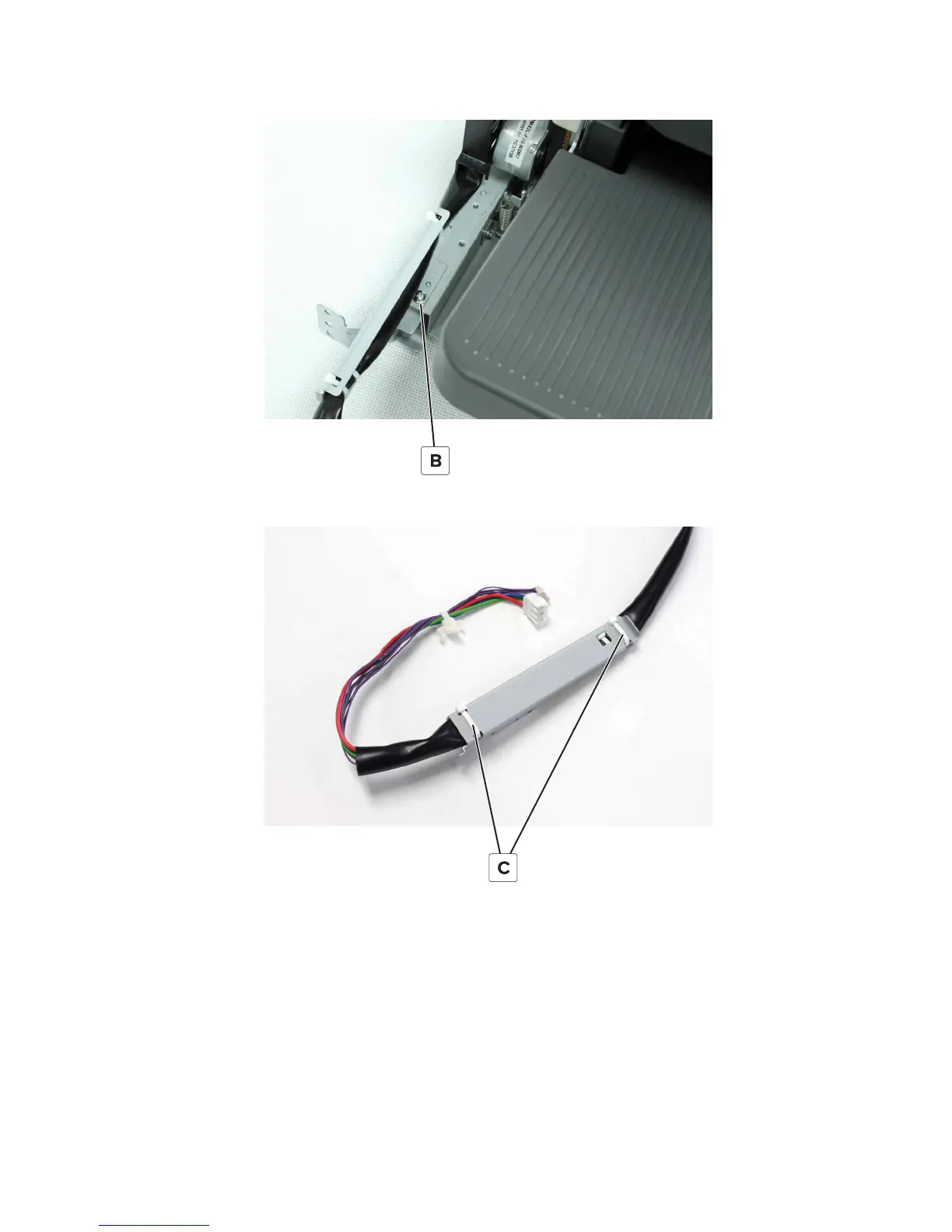 4 Cut the two zip ties (C), and then remove the cable.