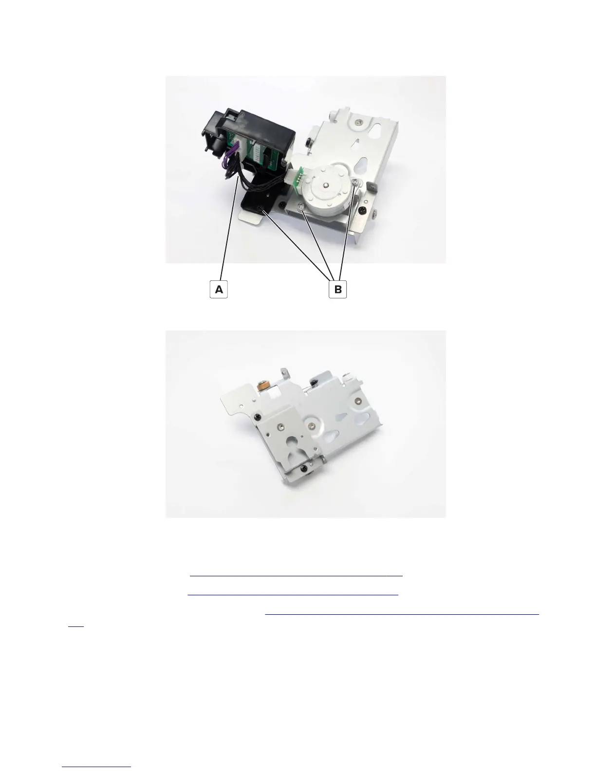 5 Remove the three screws (B), and then remove the card holder and motor.