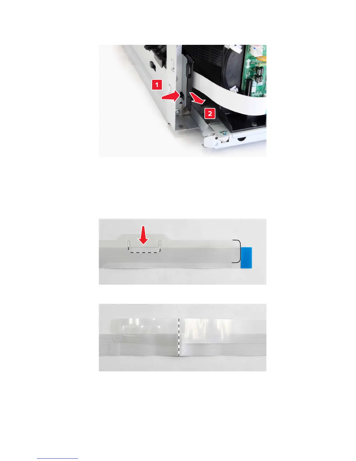 b Place the plastic film over the cable, and then position the tab under the cable. Align the edge of the film with the