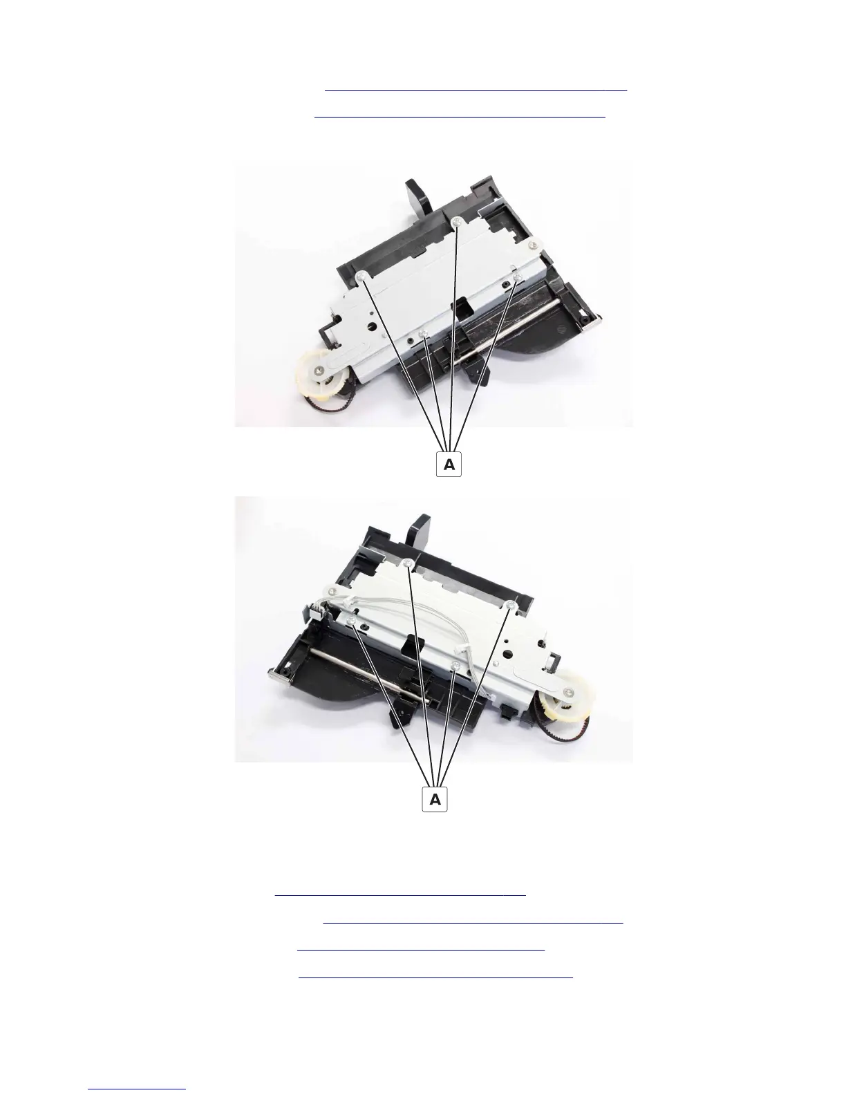 12 Remove the eight screws (A), and then remove the trays.