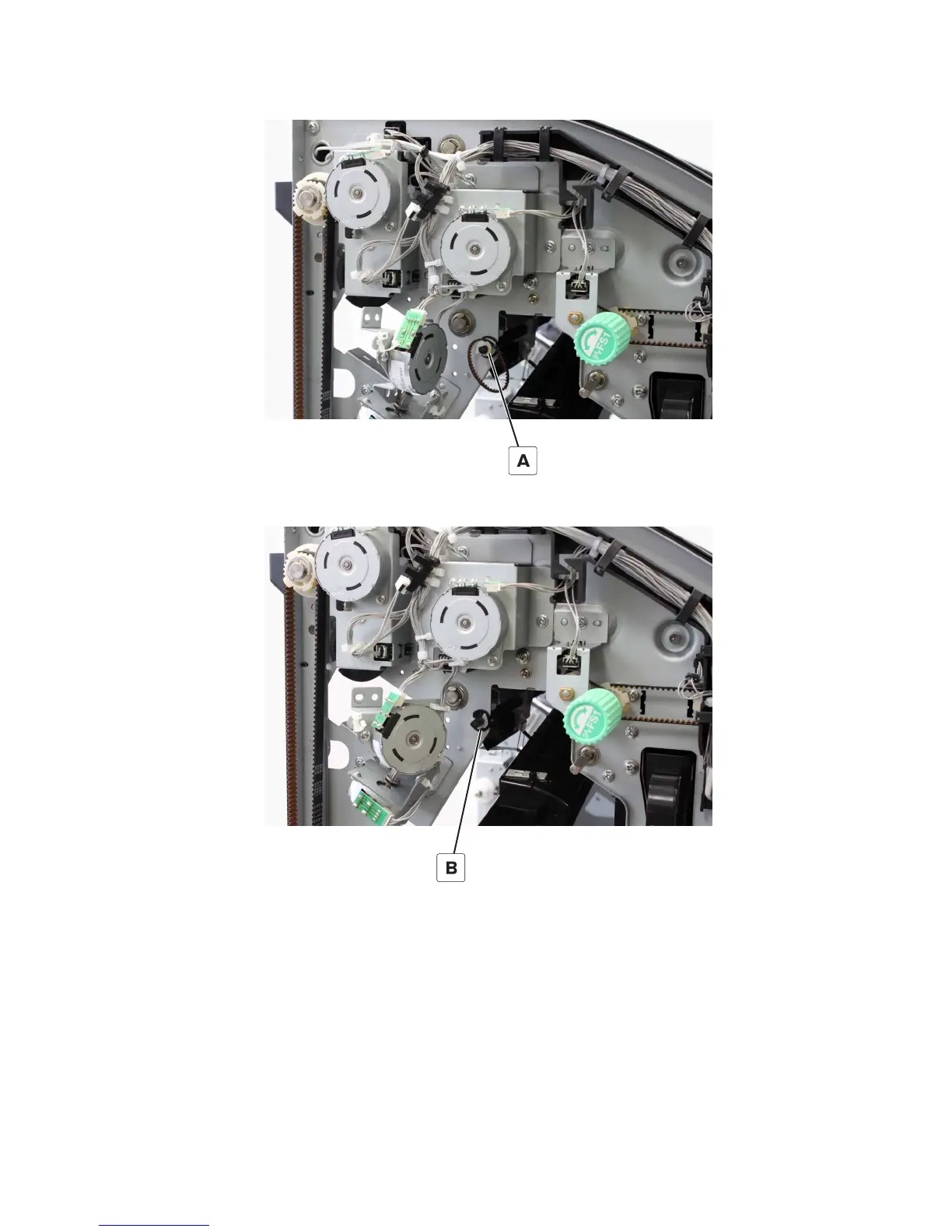 14 Remove the clip (B), and then remove the bushing.