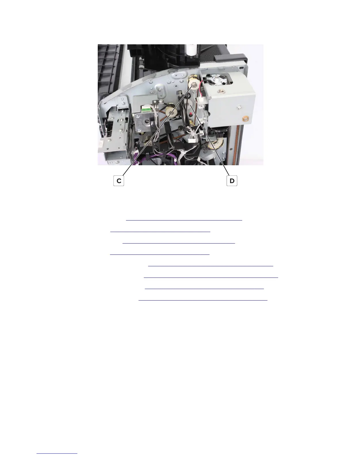 6 Remove the top bin exit paper guide. See “SHPF top bin exit paper guide removal” on page 398.