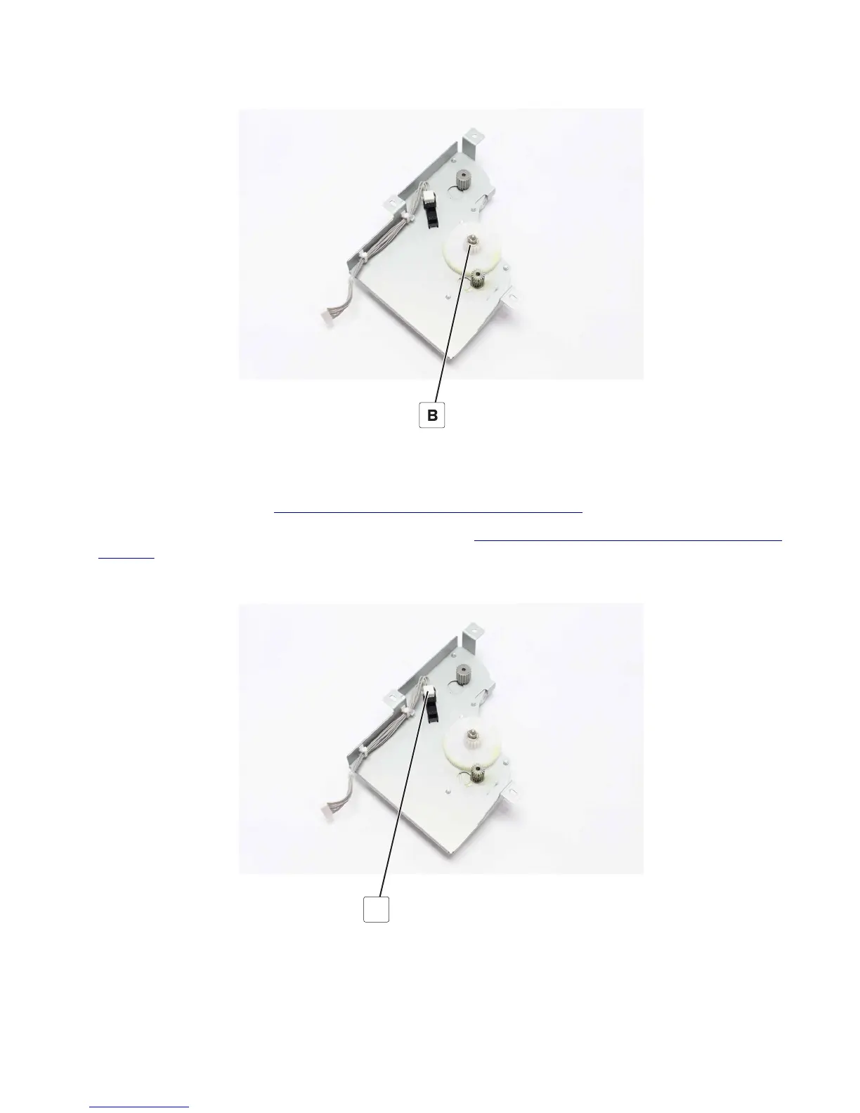 2 Remove the transport and decurl motor bracket removal. See “Transport and decurl motor bracket removal” on