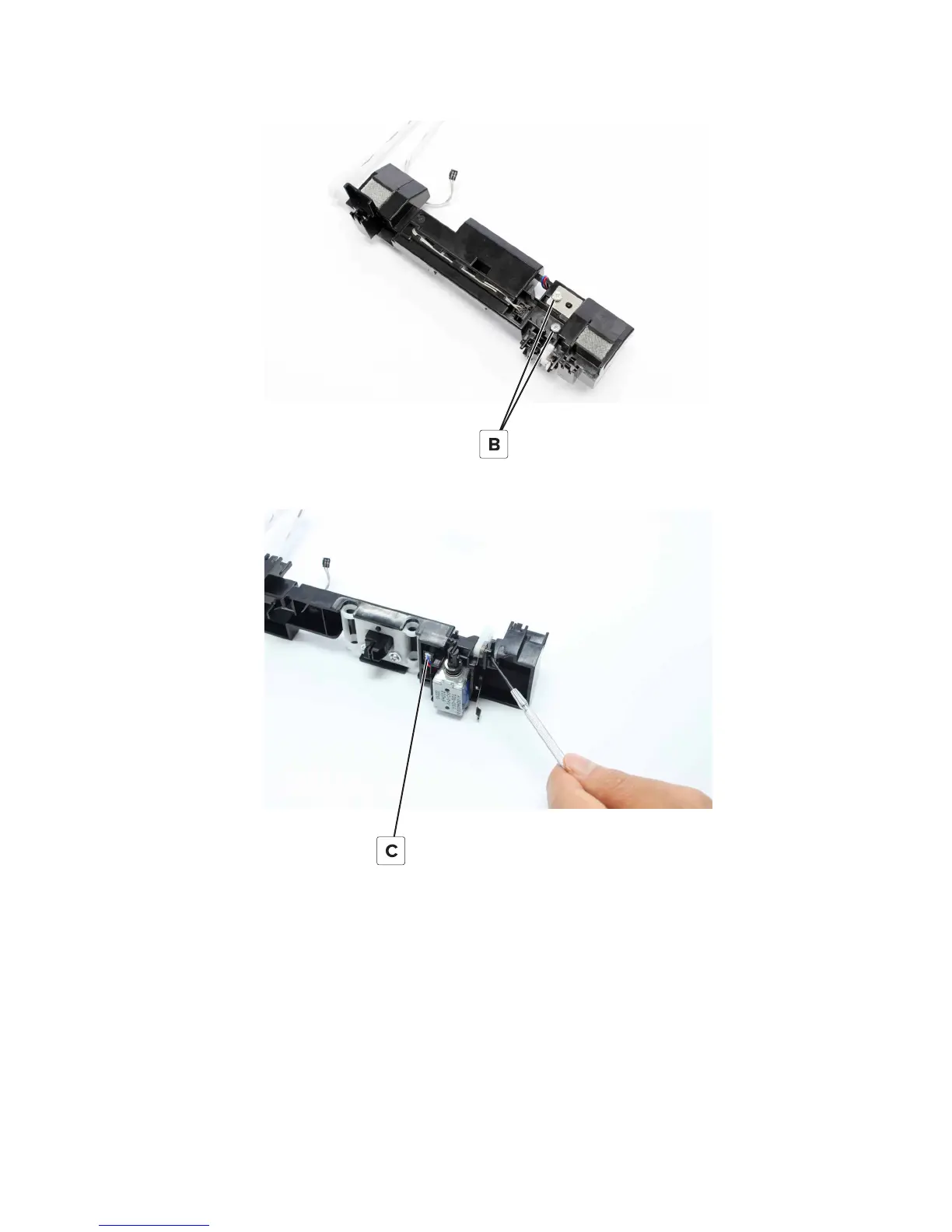 10 Disconnect the cable (C). Pry the link, and then remove the solenoid.