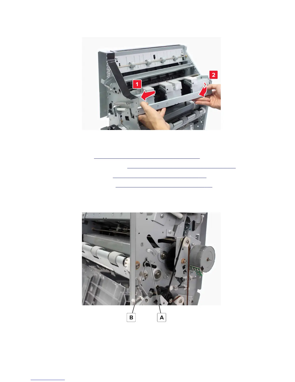 2 Remove the trifold guide motor bracket. See “Trifold guide motor bracket removal” on page 489.