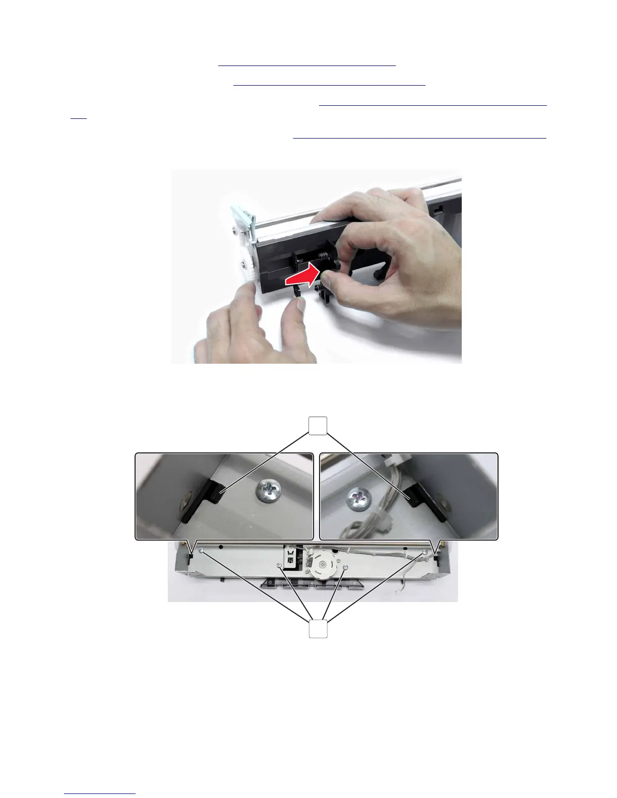 6 Remove the bifold knife and tamper assembly. See “Bifold knife and tamper assembly removal” on page 517.