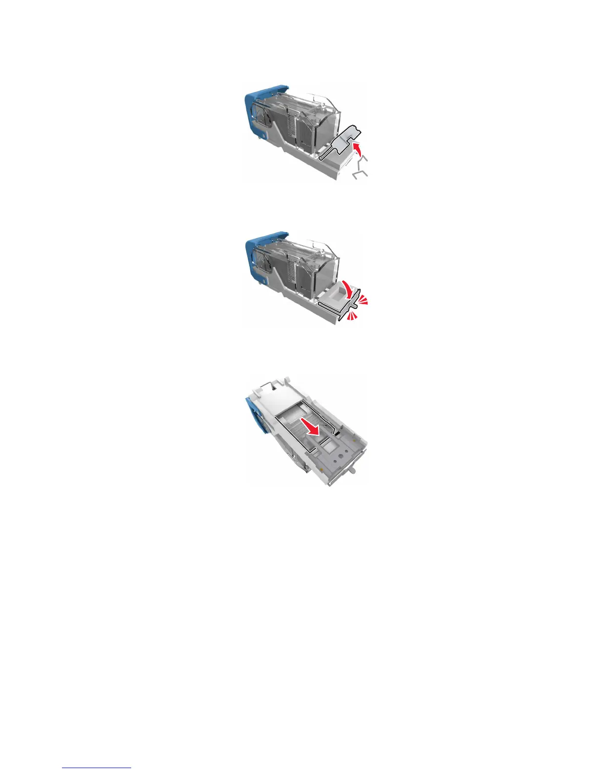Note: If the staples are at the rear of the cartridge, then shake the cartridge downward to bring the staples near