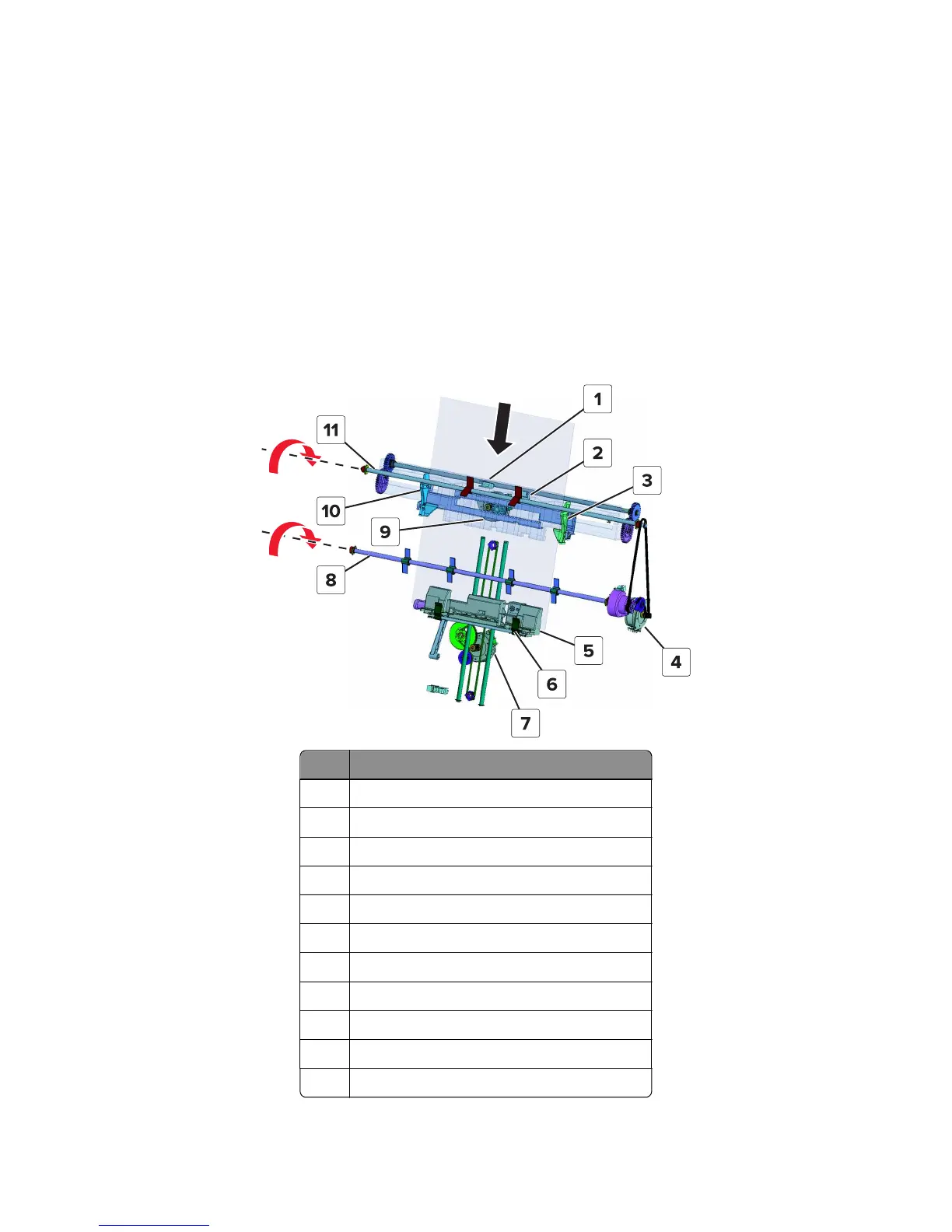 The motor (booklet maker paddle) rotates the upper and lower paddles. The paddles push down the paper to align the